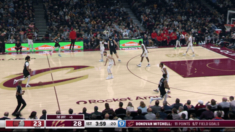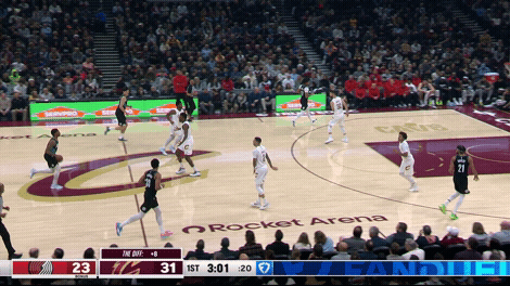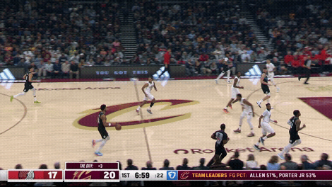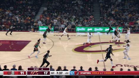 即使克林根比杨瀚森运动能力更好、传球能力更差,克林根在快攻时都是停在弧顶。我们可以清楚地看到:克林根刻意提前减速、停在弧顶,等着队友回球接应。我们也可以看到:在克林根接回球之后,开拓者的战术跑位非常流畅,因为这正是他们正常的战术安排,我们甚至可以把其视作开拓者战术跑位的启动点。