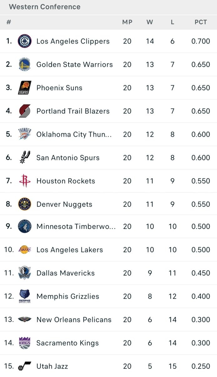 kaiyun-西部球队近20场战绩排行:快船14-6昂扬北伐 勇士&太阳&开拓者第2