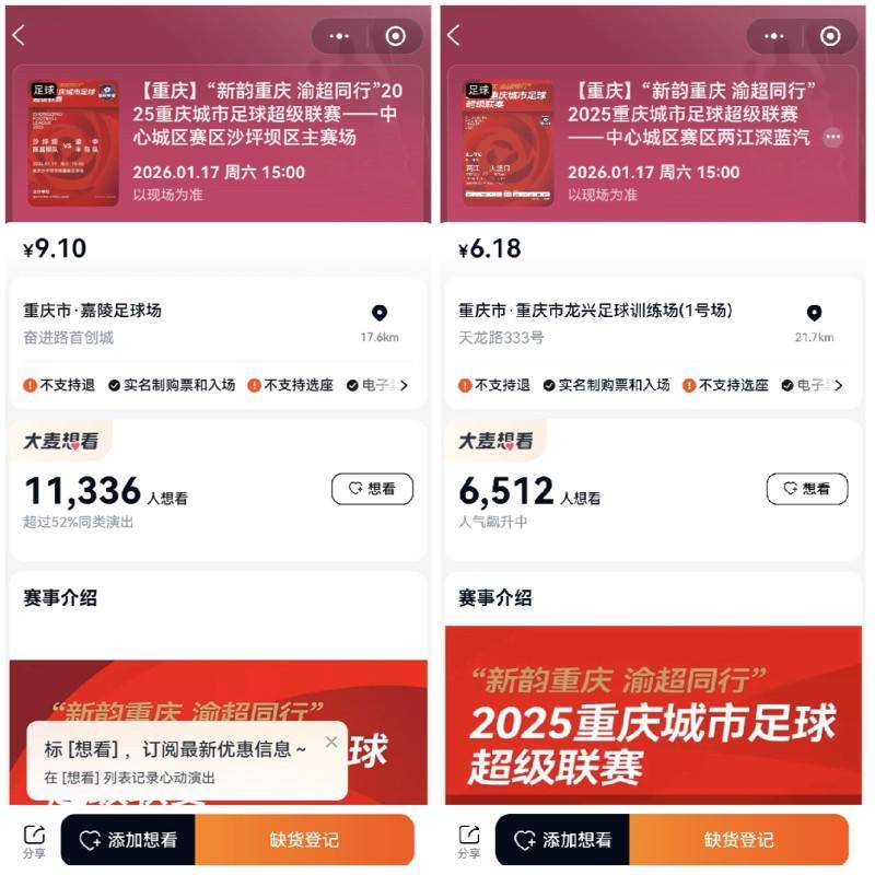1月16日,记者点开网络购票平台,发现两江深蓝汽车队VS大渡口馨田战队、沙坪坝陈昌银队VS渝中半岛队这两场比赛的门票都已经全部售罄。